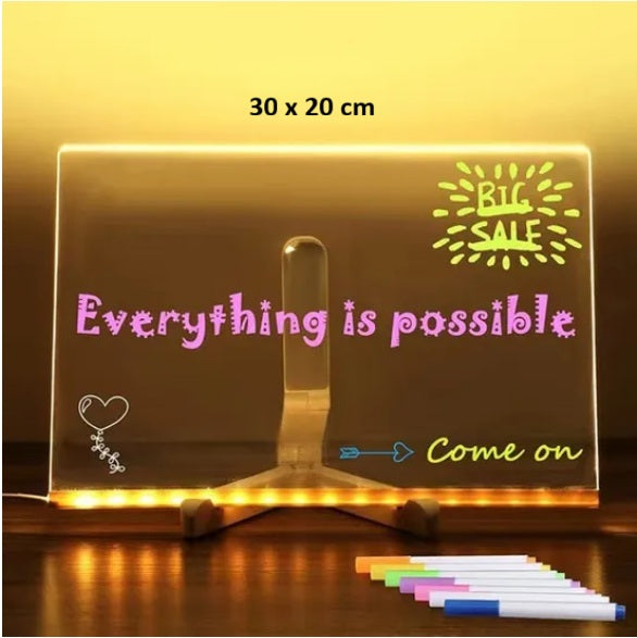 Découvrez une nouvelle façon de libérer votre créativité avec le Tableau à dessin lumineux (30 cm x 20 cm), une planche innovante qui transforme chaque idée en œuvre éclatante ! Grâce à sa surface en acrylique transparent illuminée par des LED colorées, ce tableau magique est aussi ludique qu’inspirant, parfait pour les enfants, les artistes ou simplement pour égayer votre bureau.