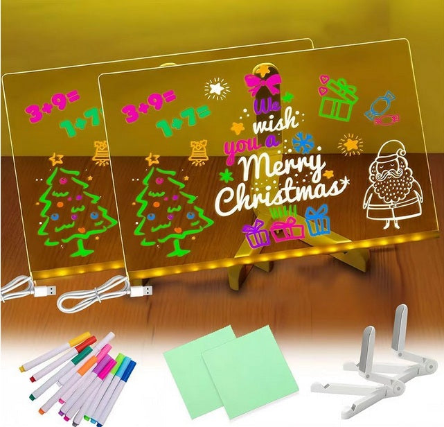 ✨ 🖊️ Tableau à dessin lumineux – Créez, imaginez et illuminez vos idées !Transformez chaque moment en une expérience créative avec le Tableau à dessin lumineux LED !Conçu pour les enfants comme pour les adultes, ce tableau magique combine divertissement, apprentissage et décoration dans un seul accessoire ludique et moderne. 🌟 Pourquoi vous allez l’adorer : ✨ Créativité sans limite 💡 Éclairage LED doux et apaisant 🔌 Rechargeable et pratique Fonctionne via alimentation USB 🧩 Conception durable et élégante Fabriqué en acrylique et plastique de qualité, avec un support réglable pour un confort d’utilisation optimal. 🎨 Polyvalent et amusant Utilisez-le comme tableau de dessin, panneau de notes, veilleuse décorative ou même tableau d’affichage lumineux pour vos messages du quotidien !